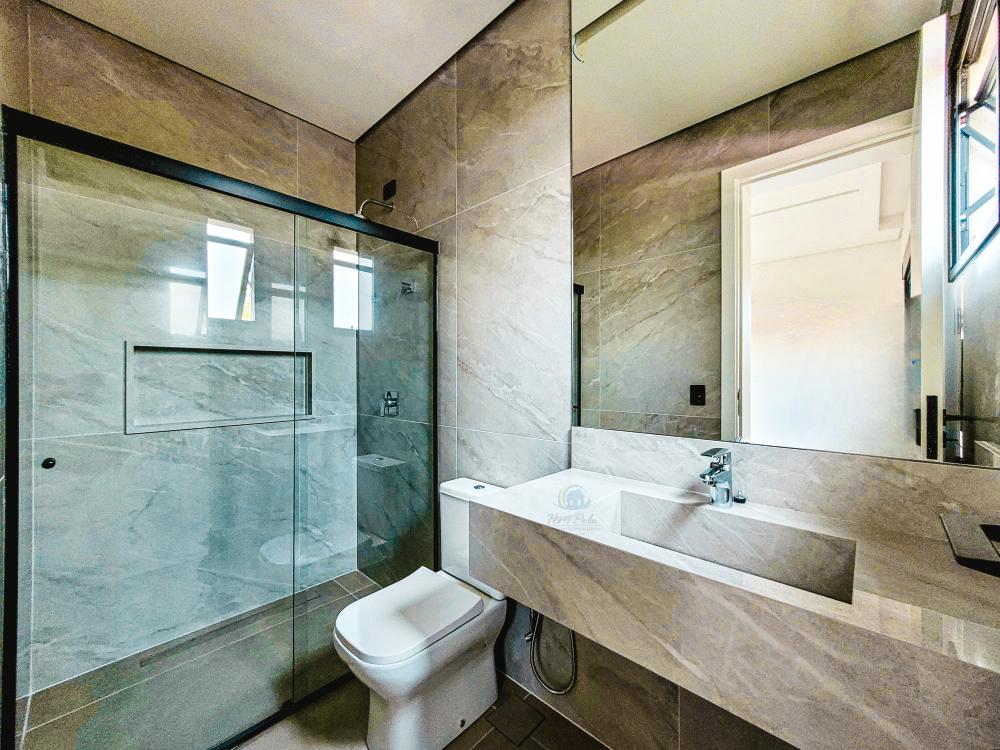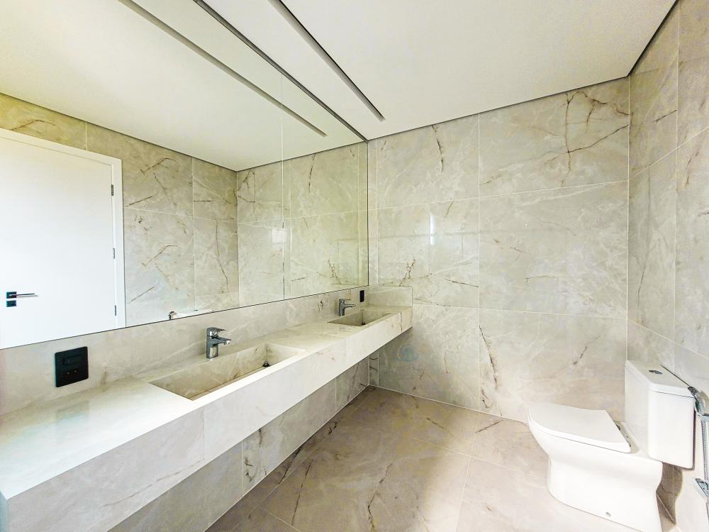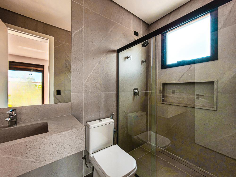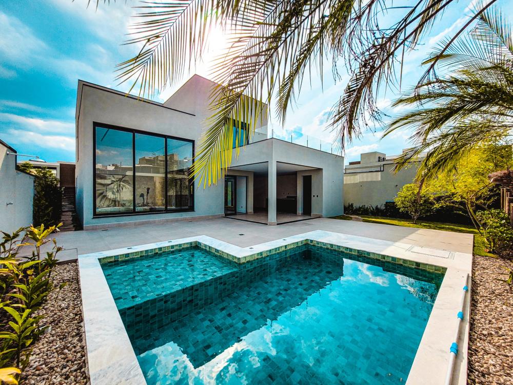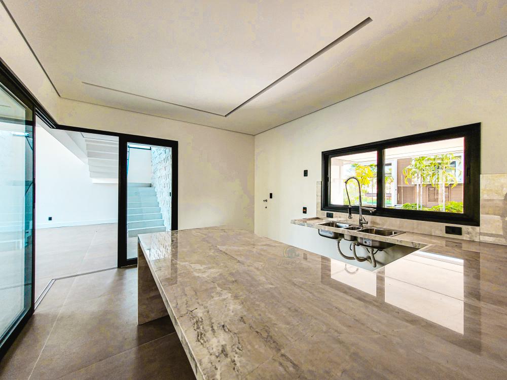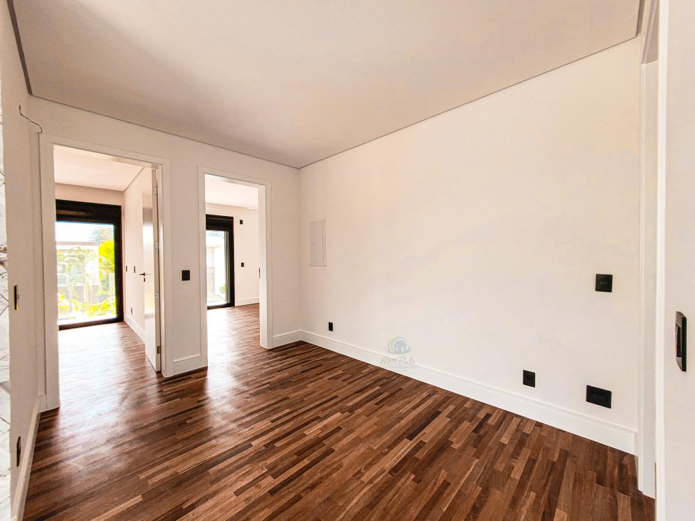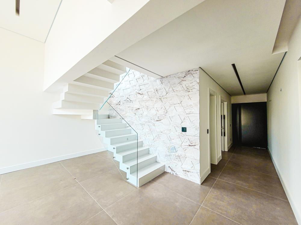 Projeto moderno e contemporâneo onde os ambientes conversam entre si em perfeita harmonia. Living para 2 amplos ambientes com acesso a sala de TV e a cozinha integrada. A escada toda esculpida em porcelanato com guarda corpo de vidros leva ao pavimento superior, com 3 amplas suítes sendo 1 master com amplo closet, todas com varanda, persianas automáticas e piso de madeira da Insdusparket. O paisagismo conta com um sistema moderno de drenagem automático, e para no lazer, piscina com preparação para aquecimento e espaço gourmet com churrasqueira. Garagem para 4 autos, sendo 2 cobertas.